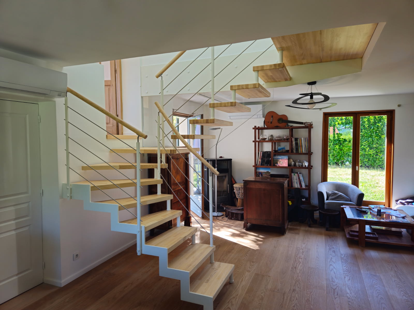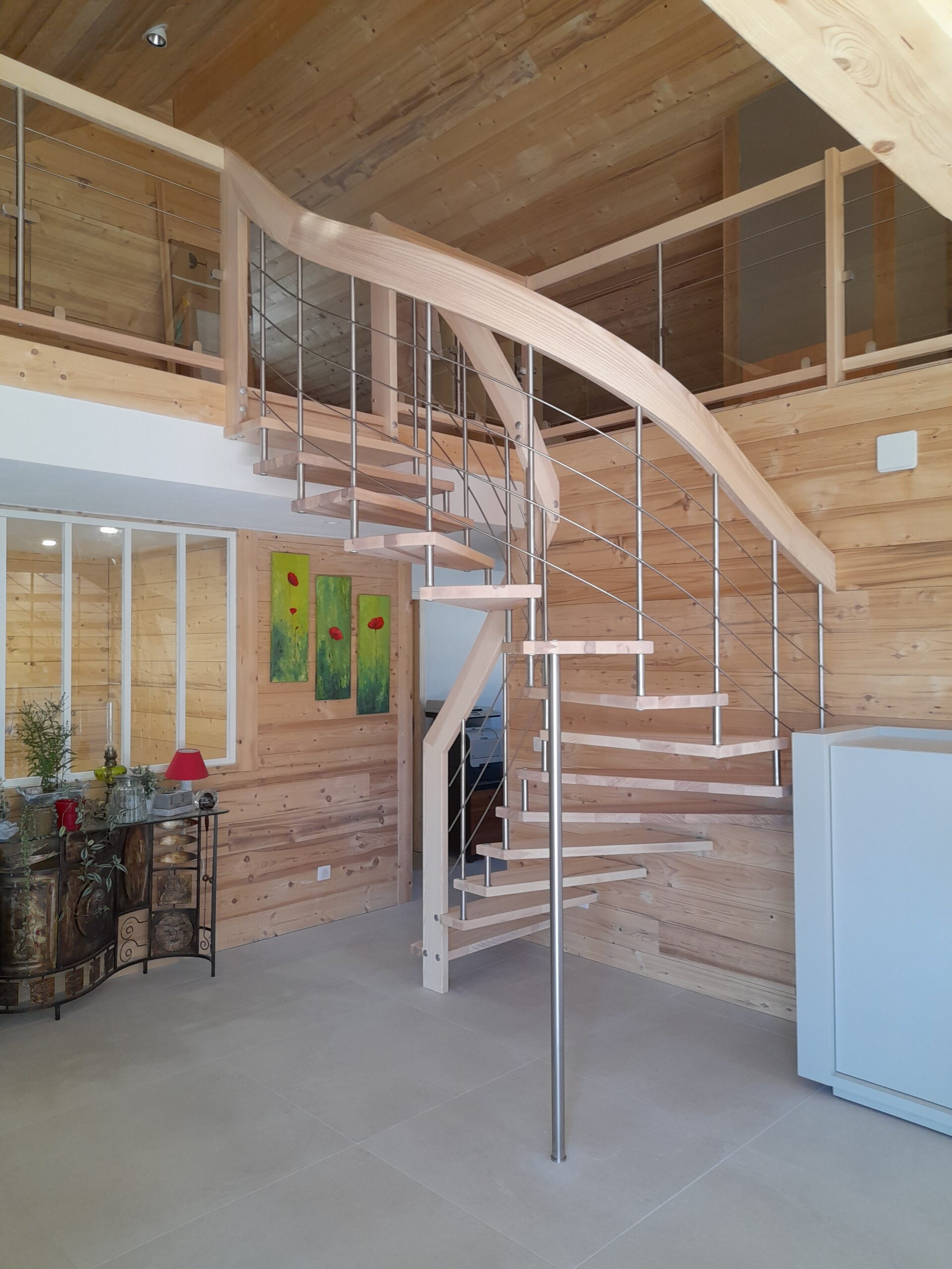 Envie de modernité et d’élégance ? L’escalier suspendu est la pièce maîtresse qui transforme votre intérieur. Grâce à son architecture aérienne, il libère l’espace visuel et laisse circuler la lumière, tout en garantissant une solidité à toute épreuve.